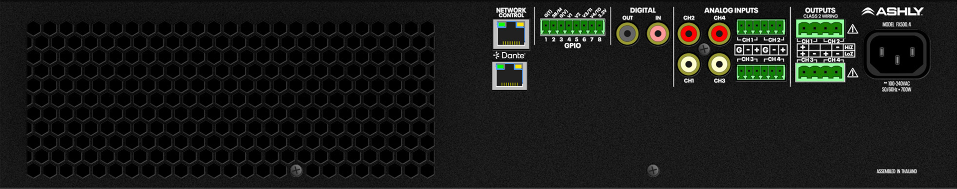 Ashly’s FX comes in two configurations: 1/2 Rack Units (RU) for fitting into those tight spaces where other high-powered amps won’t go. And for when you need the “big guns”, the 2 RU FX 500.2 & FX500.4 deliver power enough for even the largest speakers in your system (like those big subs). All FX models are lightweight for their power levels (the 2,000W FX 500.4 is only 16.5 lbs!). FX does more, in a smarter, more comprehensive package.